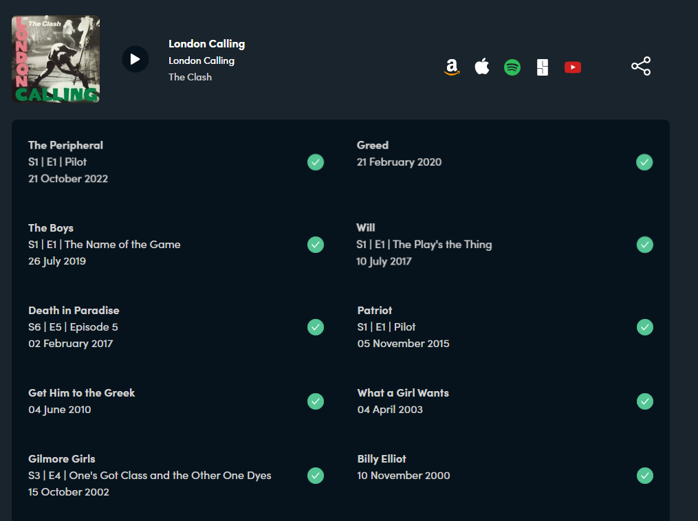 Creada en 2005 por Amanda Byers, una desarrolladora y amante de la música y las series. Ayudar a los espectadores a encontrar fácilmente las canciones que aparecen en series y películas. En 2021, Tunefind fue adquirida por Songtradr, una plataforma especializada en licencias musicales. Tunefind organiza su contenido por títulos: series de televisión, películas (e incluso videojuegos). Se puede buscar una producción específica y navegar por temporadas, episodios y hasta escenas.