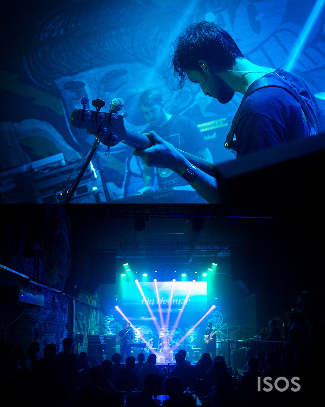 Fin del mar abrió la noche presentando las canciones de su primer disco. Además de la suma de covers de The Cure con la voz de Juan Cruz Caos como invitado (quien se despidió del escenario al grito de “aguante The Cure y Fin del Mar”) y “Canción para Naufragios” de Los Redondos en una versión que potencia la parte más oscura de la banda del Indio y Skay.